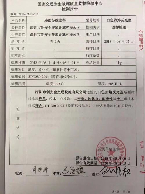 創(chuàng)安全交通設施的熱熔反光涂料是一款比較優(yōu)質(zhì)的涂料,是得到國家質(zhì)檢中心認可的。